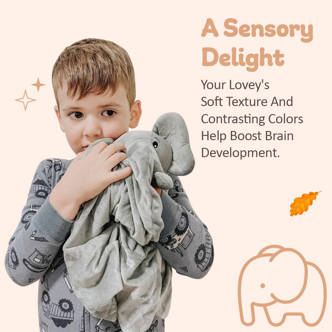 Meet Ellie the Elephant - Our baby soother allows your child to play with the stuffed animal and then gently drift off to sleep with the built-in sound machine.